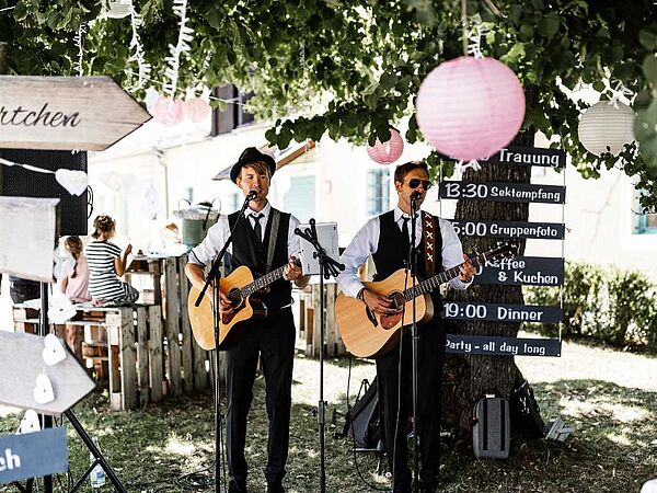 Gerne begleiten wir zu eurer Hochzeit auch über den Nachmittag hinweg. Wir starten ab der Gratulation / Empfang und schaffen über den Nachmittag und Kaffe/Kuchen eine entspannte Atmosphäre mit lockeren Songs.