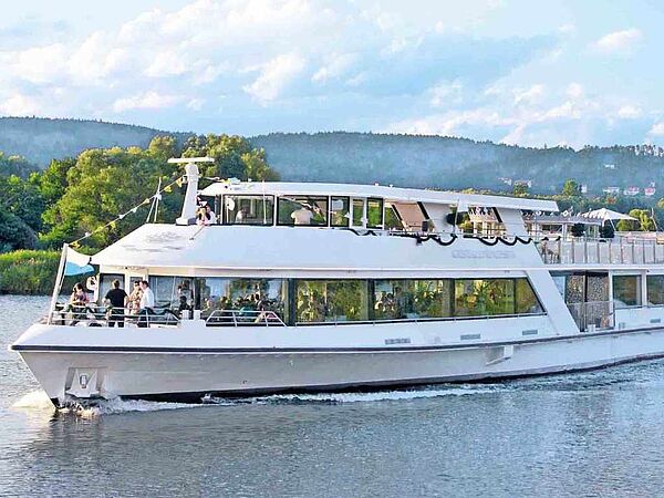 Die Gäste gehen in Regensburg an Board. Auf dem Oberdeck kann dort auch eine Trauung stattfinden.