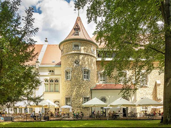 Am Nachmittag finden alle Gäste im großzügigen Biergarten Platz - Am Abend geht es in den Saal. Vom Service bis zu den Speisen ist hier immer alles grandios.